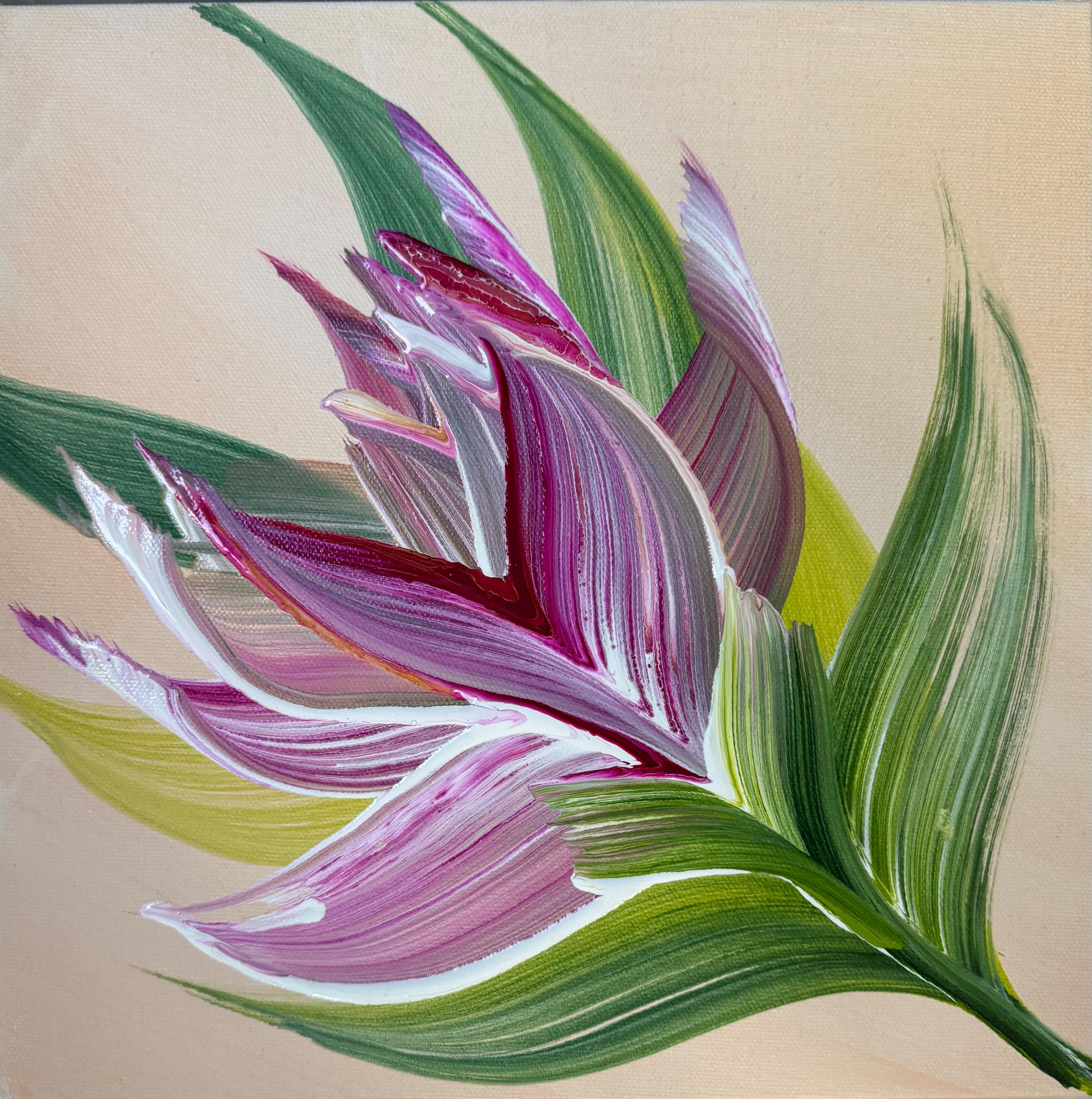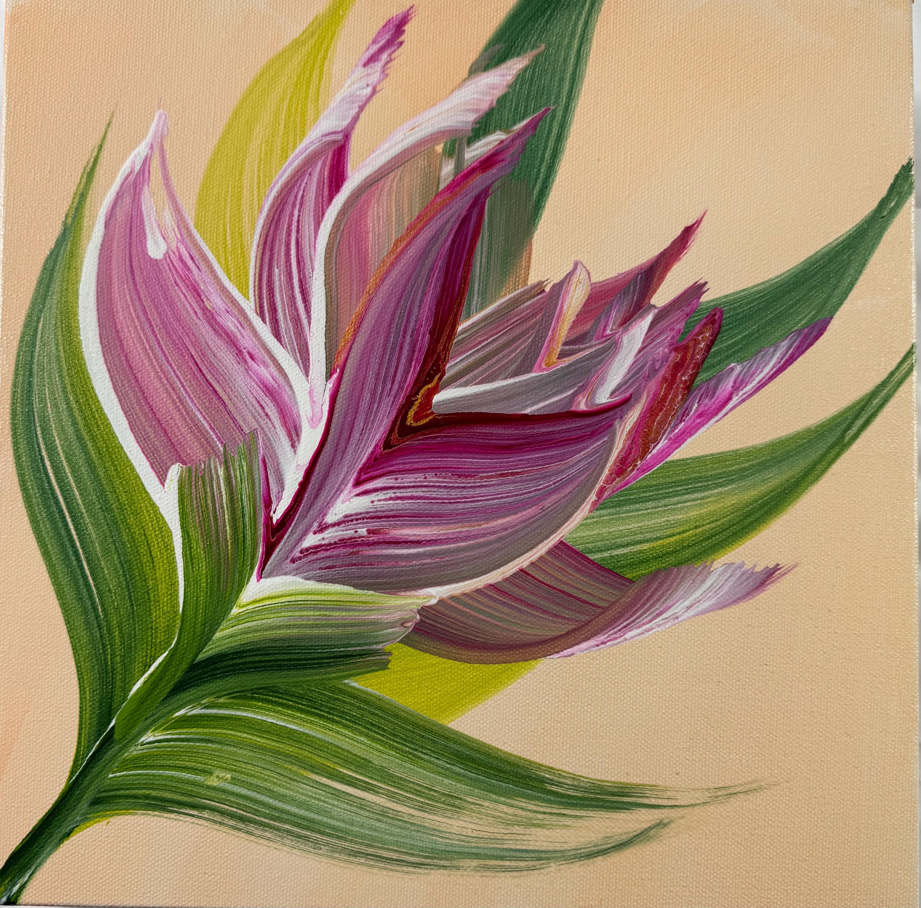 Bring a pop of vibrant energy to your space with Bold Bloom, a lively botanical painting full of movement and color. Bold magenta petals and sweeping green leaves dance across a warm neutral background, creating a striking floral that feels both modern and organic. This expressive piece adds joy, confidence, and a fresh burst of nature to any room.