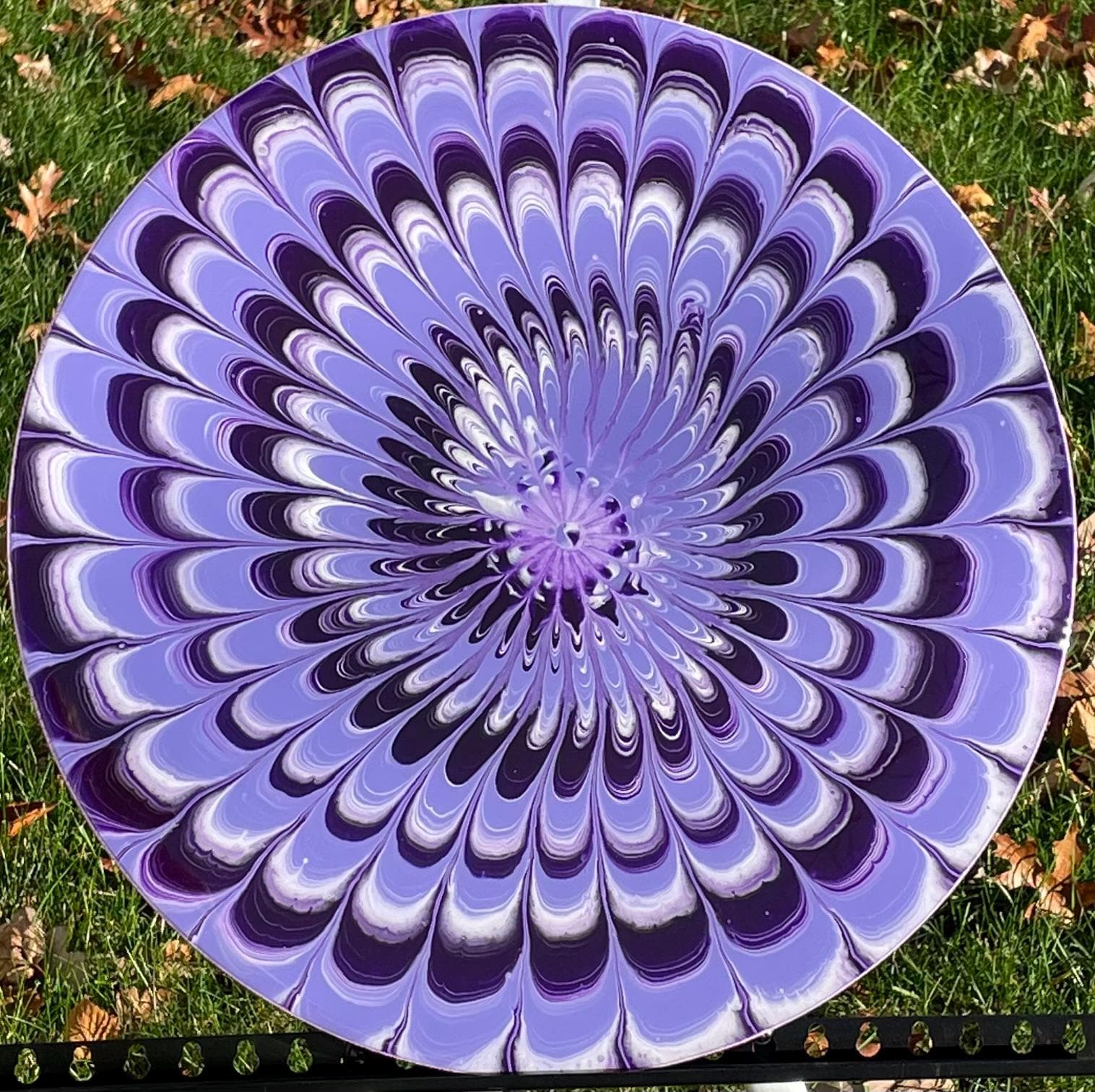 Shades of purple and white swirl into a nautilus in this whimsical painting.