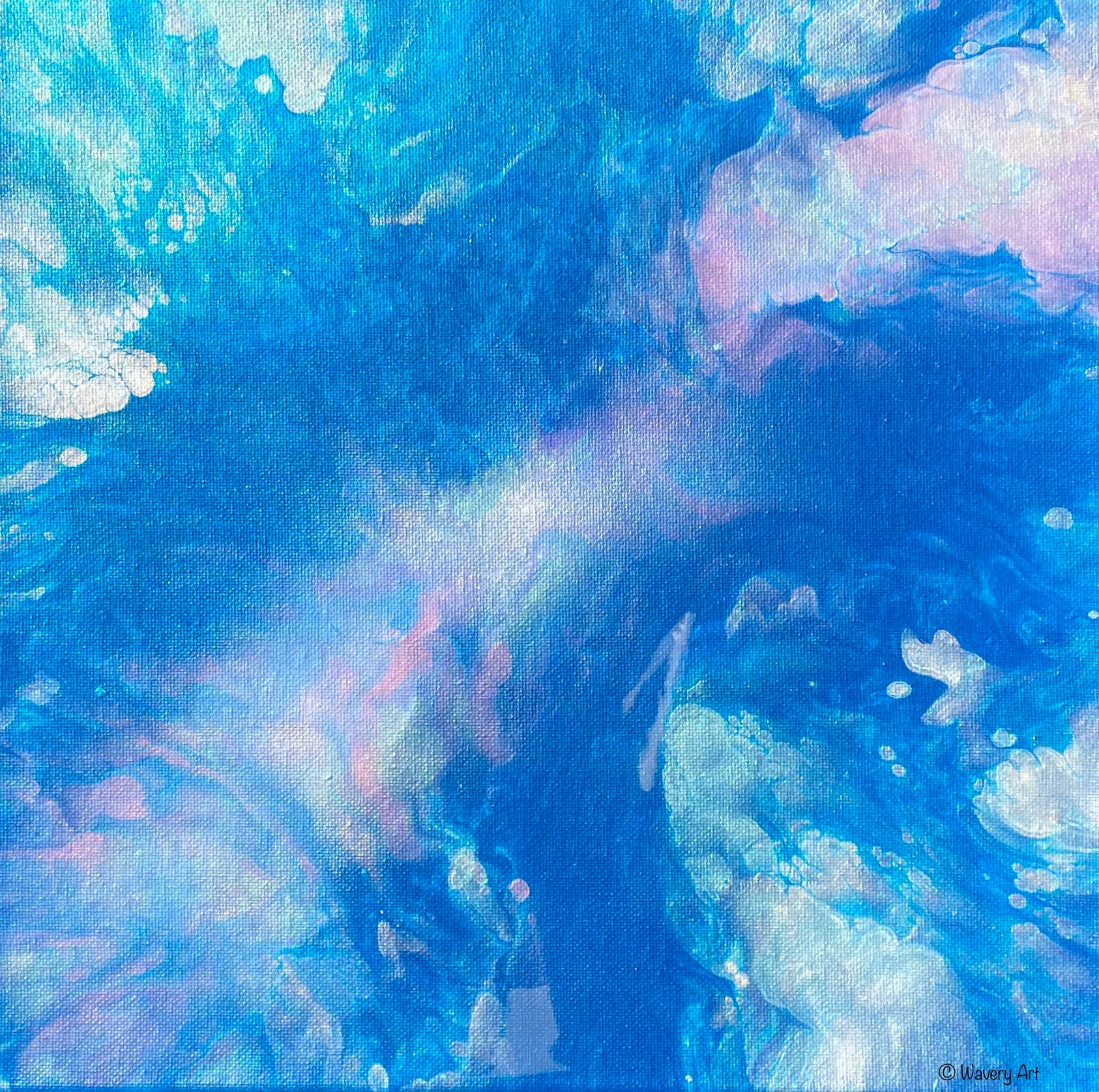 Iridescent colors create a nebula on a 12x12 canvas
